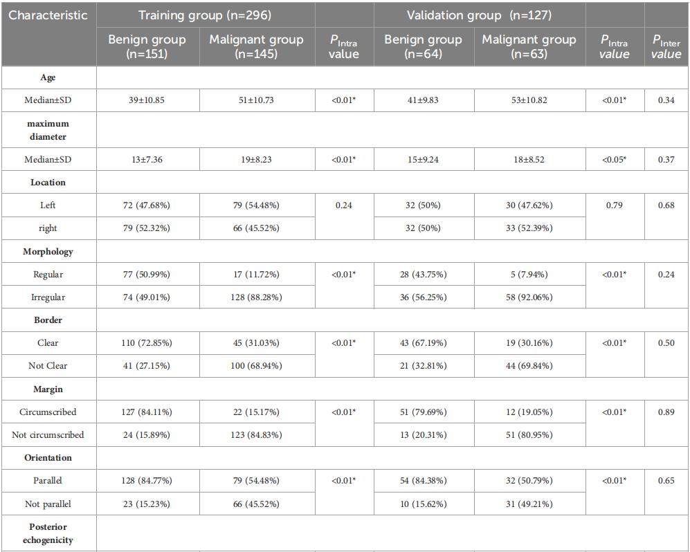 TABLE 1 Clinical basis information and sonographic features of patients with breast lesions.