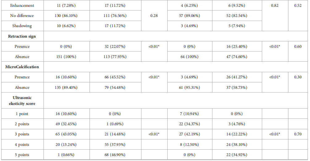 表1 乳腺病变患者的临床基本信息和超声特征。